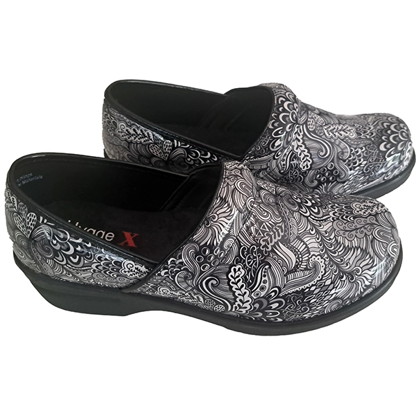 Safety is never sacrificed with the Monochrome Peacock Professional Healthcare clog. Designed with a US Certified Slip-Resistant outsole, these clogs deliver unbeatable traction on various surfaces, allowing you to move confidently and securely throughout your day. The lightweight construction ensures effortless wear, while the stylish monochrome base colour with a paisley patten combines practicality with modern elegance.