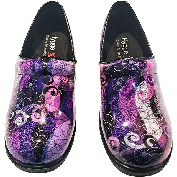 The Hygge X Purple Haze Professional Healthcare clog is designed to redefine comfort and convenience for healthcare professionals and anyone in need of sturdy, reliable footwear. Its innovative features and premium materials make it a standout choice for both work and everyday wear. Crafted with an easy-to-clean PU leather upper and enclosed toes and heels, this stylish clog meets workplace standards without compromising on looks.